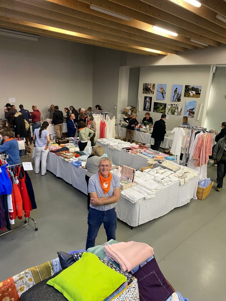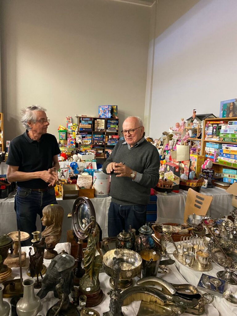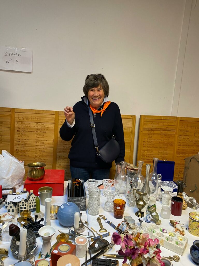 Pour cette édition 2025, le Salon de thé lumineux, spacieux et cosy tenait lieu d’accueil , le linge était à l’honneur au centre de la brocante et la grande salle arrière (des scouts) ressemblait à une caverne d’Ali Baba avec meubles, tableaux, lampes et bibelots.