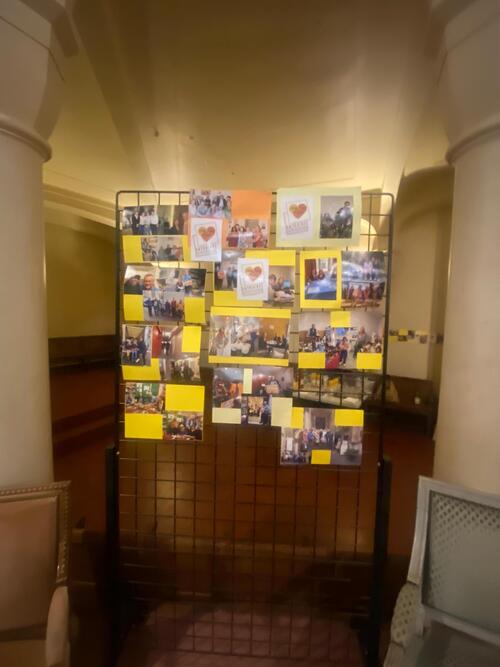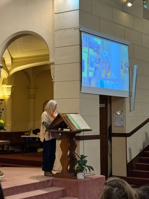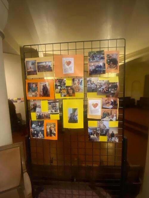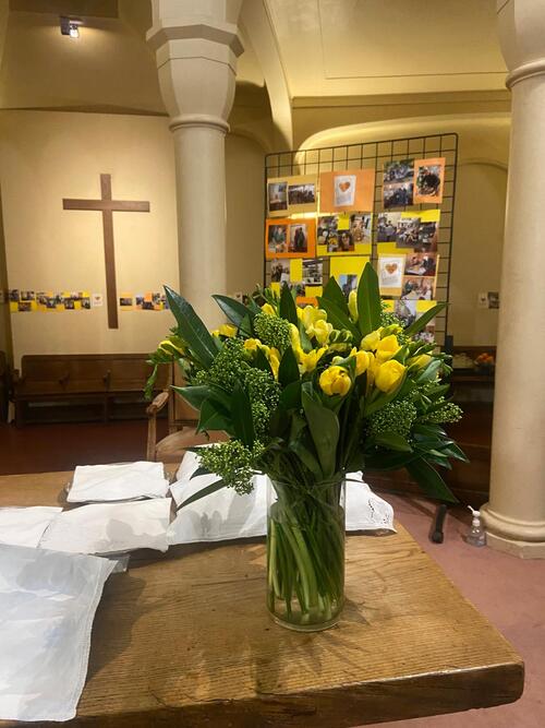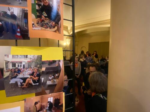 Les visages aussi ont été mis à l’honneur. Dans sa présentation, Edina Pulaï, qui nous rejoindra au 1er juillet, a rappelé l’importance des visages des communautés avec lesquelles elle a cheminé, se réjouissant de découvrir les nôtres très bientôt. Les photos des bénévoles d’hier et d’aujourd’hui, prises au gré des moments de vie de notre Entraide, ont aussi témoigné de l’importance de cette chaîne humaine. Plusieurs bénévoles ont contribué à la liturgie. Enfin, le texte du jour a mis face-à-face Elie et la veuve de Sarepta (1 Rois 17,1 à 16) pour questionner l’accueil de l’autre, la confiance qui sauve quand la farine et l’huile viennent à manquer. L’accueil et le don deviennent alors source d’espoir et d’espérance. C’est aussi cela qui est vécu dans notre Entraide. Dieu peut utiliser des moyens inattendus pour susciter le partage, comme il l’a fait avec la veuve de Sarepta. Chacun de nous est cette veuve que Dieu appelle à se mettre en mouvement pour entrer dans la danse du partage. Quand nous lui faisons confiance, il multiplie ce que nous pouvons partager, comme l’huile et la farine de la veuve. C’est ainsi que se dresse un rempart contre la peur qui isole et empêche le partage, pour nous ouvrir à ce geste universel de l’accueil et du partage qui sont à la source de notre Entraide.