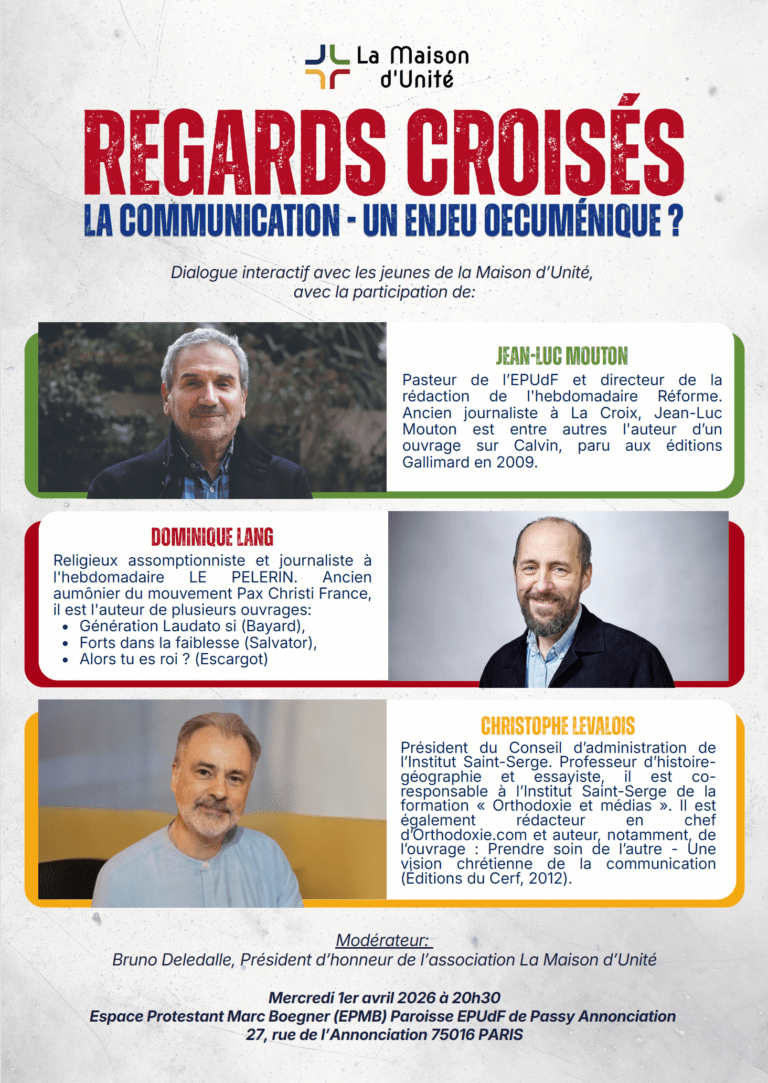 le mercredi 1 avril 2026 à 20h30 à l’EpMB sur le thème « La communication un enjeu œcuménique ? »