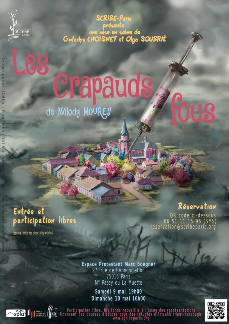 L’association SCRIBE-Paris revient à l’EPMB pour deux représentations samedi 9 mai à 19h et dimanche 10 mai à 16h dans Les Crapauds fous, la première création de Mélody Mourey. Elle s’inspire librement de l’histoire de deux jeunes médecins, Eugeniusz Łazowski et Stanisław Matulewicz, qui auraient sauvé une partie du village de Rozwadów en Pologne, en faisant croire qu’une épidémie de typhus frappait ses habitants. Un stratagème qui aurait permis d’éloigner quelque temps la menace nazie, faisant plus que jamais rage deux ans après l’annexion du pays par l’Allemagne. Cinquante ans plus tard, la petite-fille d’Eugeniusz, étudiante en psychologie, rend visite à Stanislaw à l’aube de sa retraite. Elle voudrait en savoir plus sur les actions de son grand-père pendant la Seconde Guerre Mondiale.