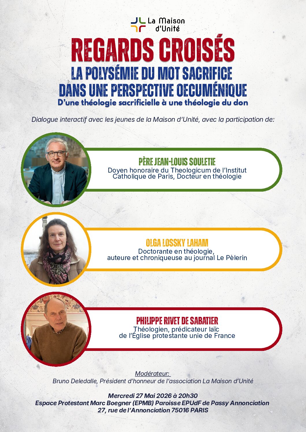La polysémie du mot sacrifice dans une perspective oecuménique – mercredi 27 mai 2026 à 20h30 à l’EpMB
