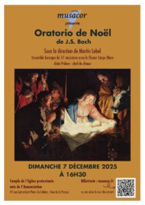 Dimanche 7 décembre à 16h30 au temple, Musacor vous propose un concert exceptionnel : l’Oratorio de Noël de Bach, par … Lire l’article