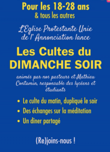 Cultes du dimanche soir : 18h30 à l’EPMB, c’est parti !